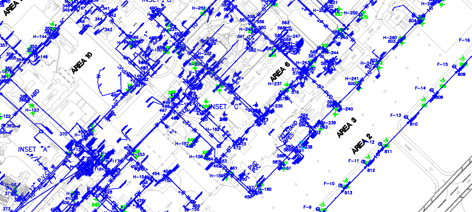 Collection of above ground utility features and incidental markings correlated with Level D information